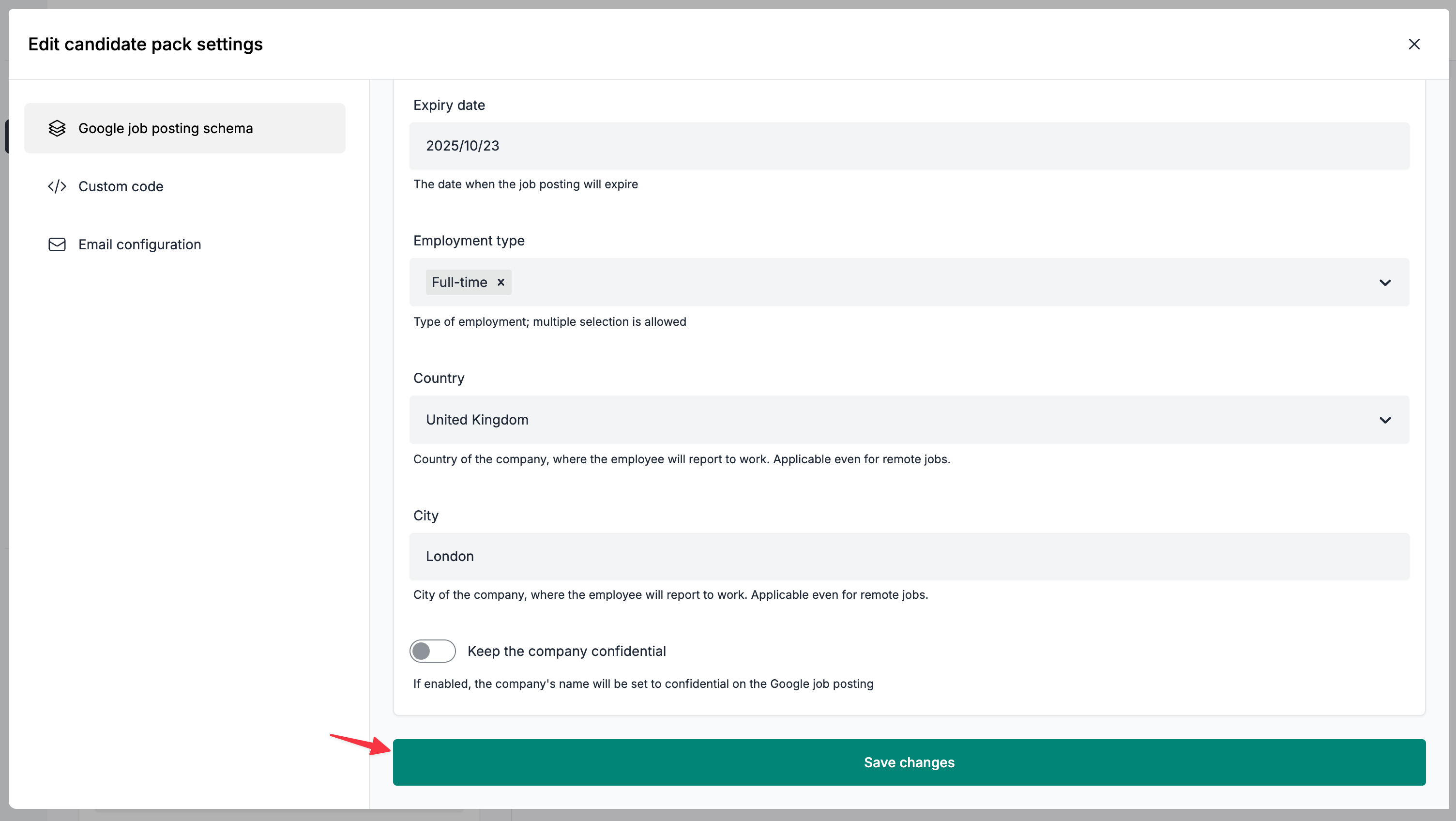 A: To delist a candidate pack from Google Jobs, you'll need to set the Expiry date field to a day in the past. This means that at the next indexing cycle, we'll know that we should be notifying Google about an expired job posting and your intention in delisting it.
