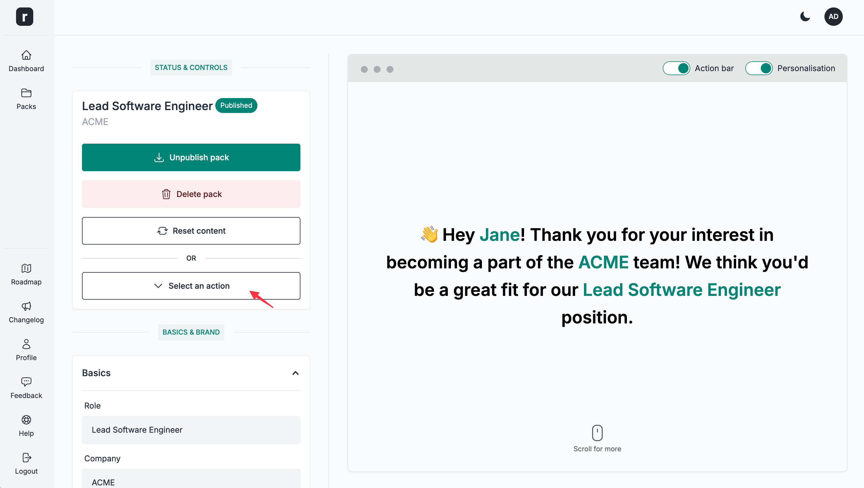 Create a personalised candidate pack link