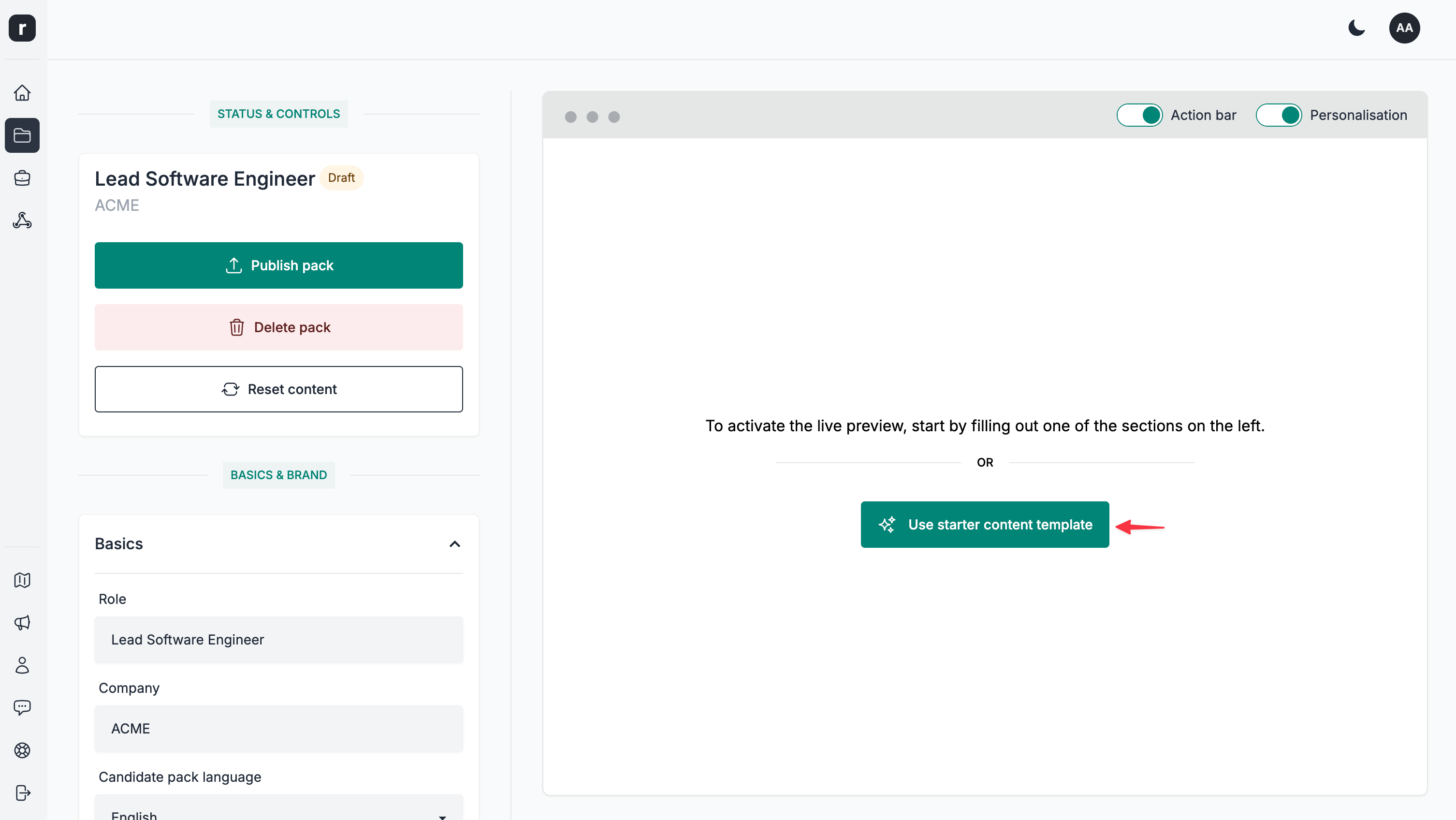One of the easiest ways to get started with a new candidate pack is by using the starter content template.